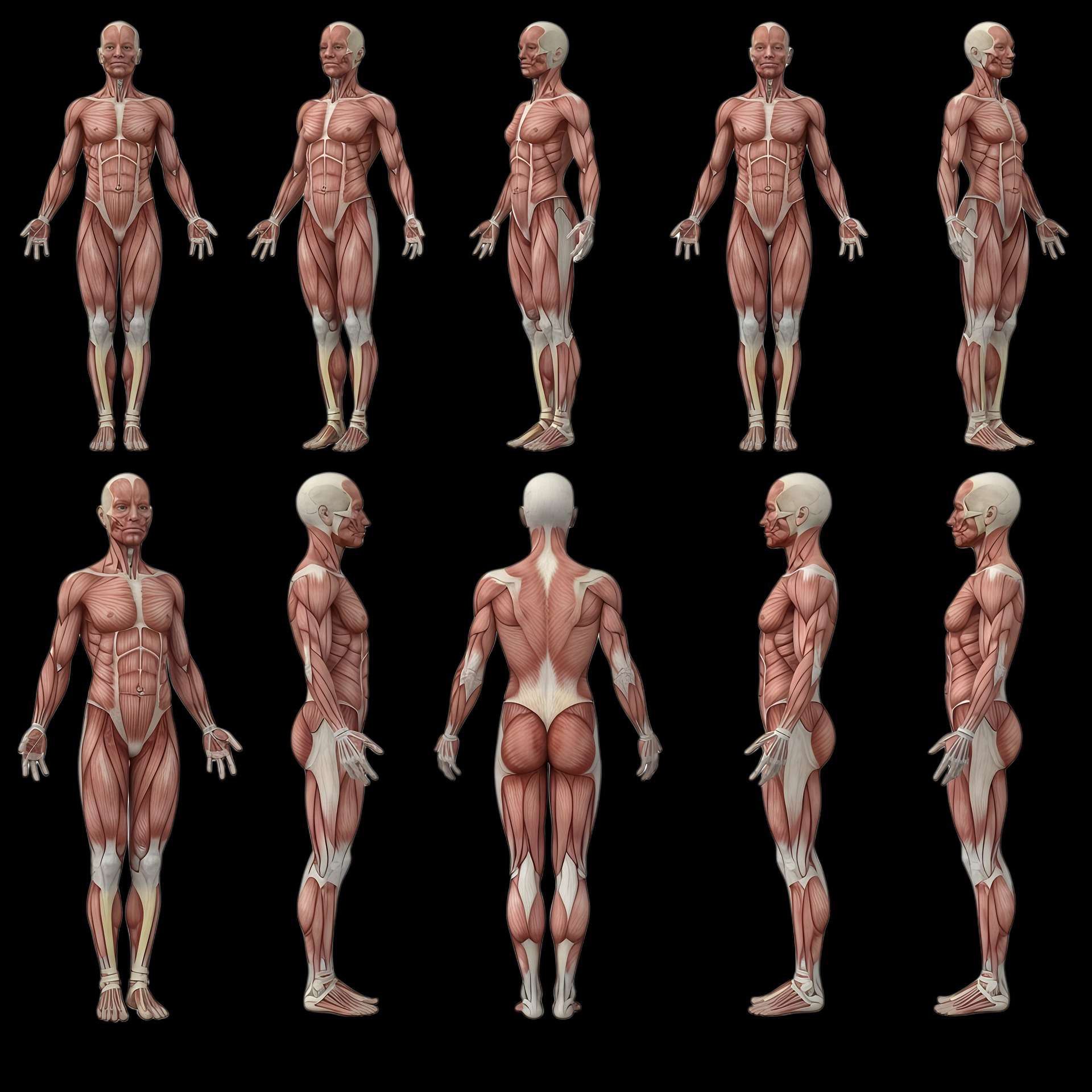 Tests musculaires axiaux, para-axiaux et longitudinaux.
